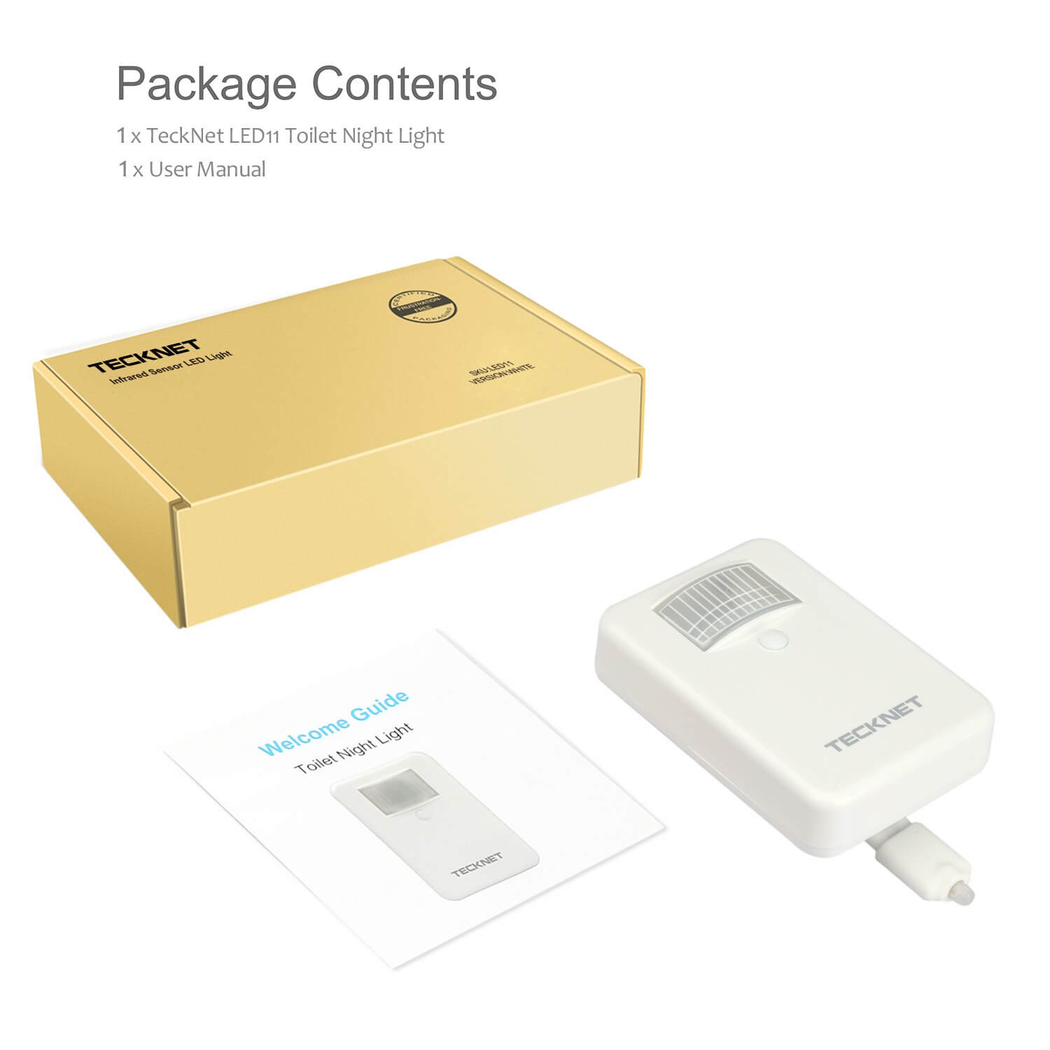 - TeckNet LED11 е безжичен сензор за движение с LED светлина, подходящ за баня и тоалетни