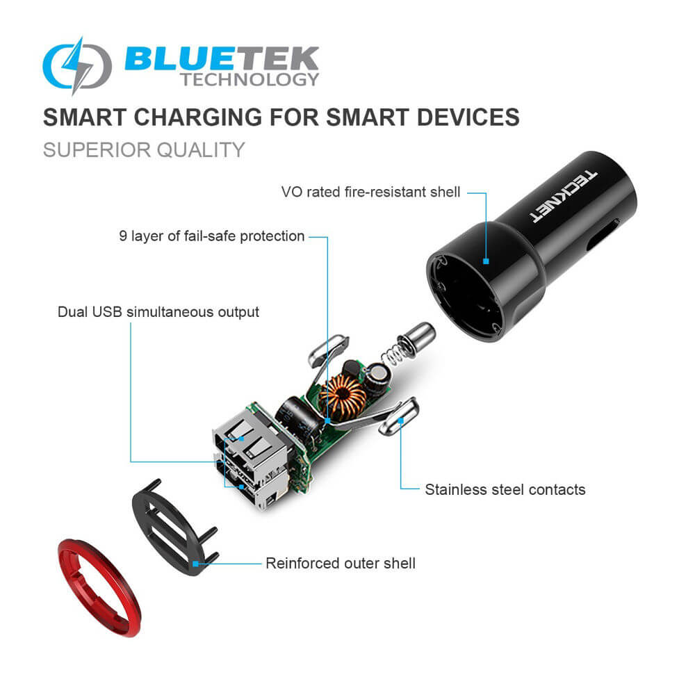 § Output: 5.0V/4.8A Max. Each BLUETEK 5.0V/2.4A