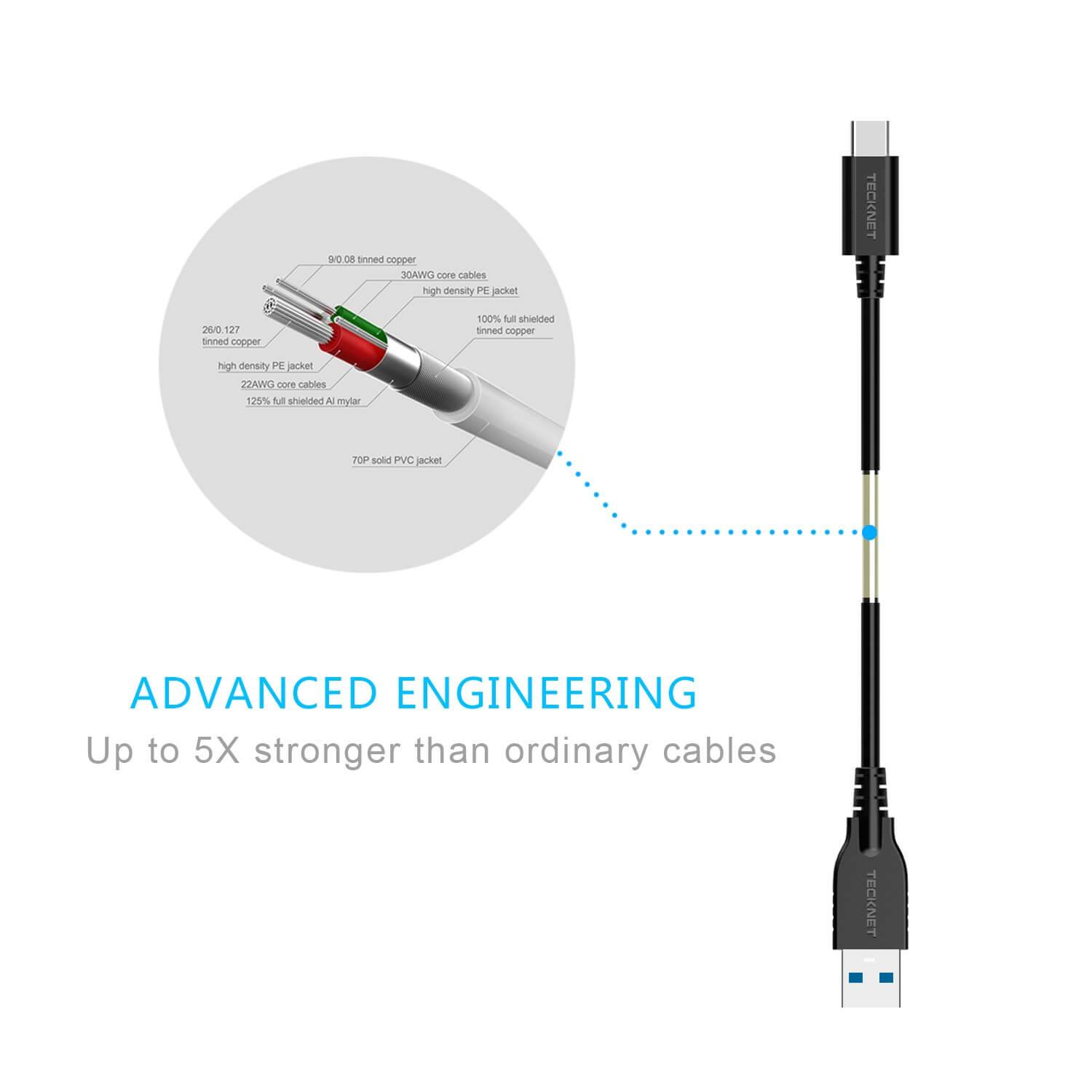 TeckNet TA100 3.1 USB-A to USB-C Cable - качествен USB към USB-C кабел за MacBook и устройства с USB-C порт (черен)