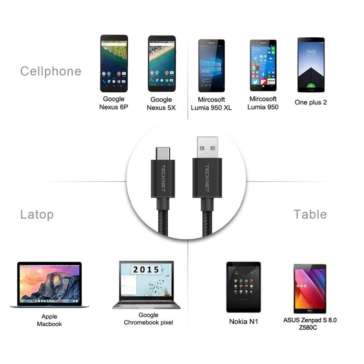 TeckNet TA502 Braided 3.1 USB-A to USB-C Cable - качествен плетен USB към USB-C кабел за устройства с USB-C порт (черен)