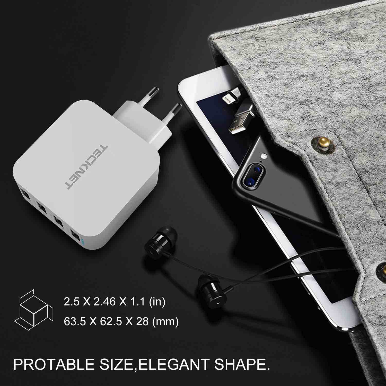 - Качествено и компактно захранване за ел. мрежа с 4 USB-A изхода