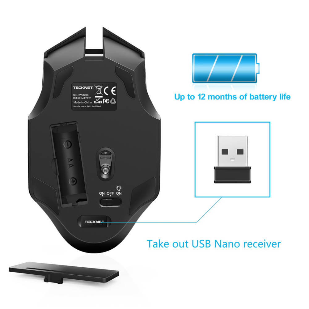 - 1 x Tecknet WM289 безжична мишка
