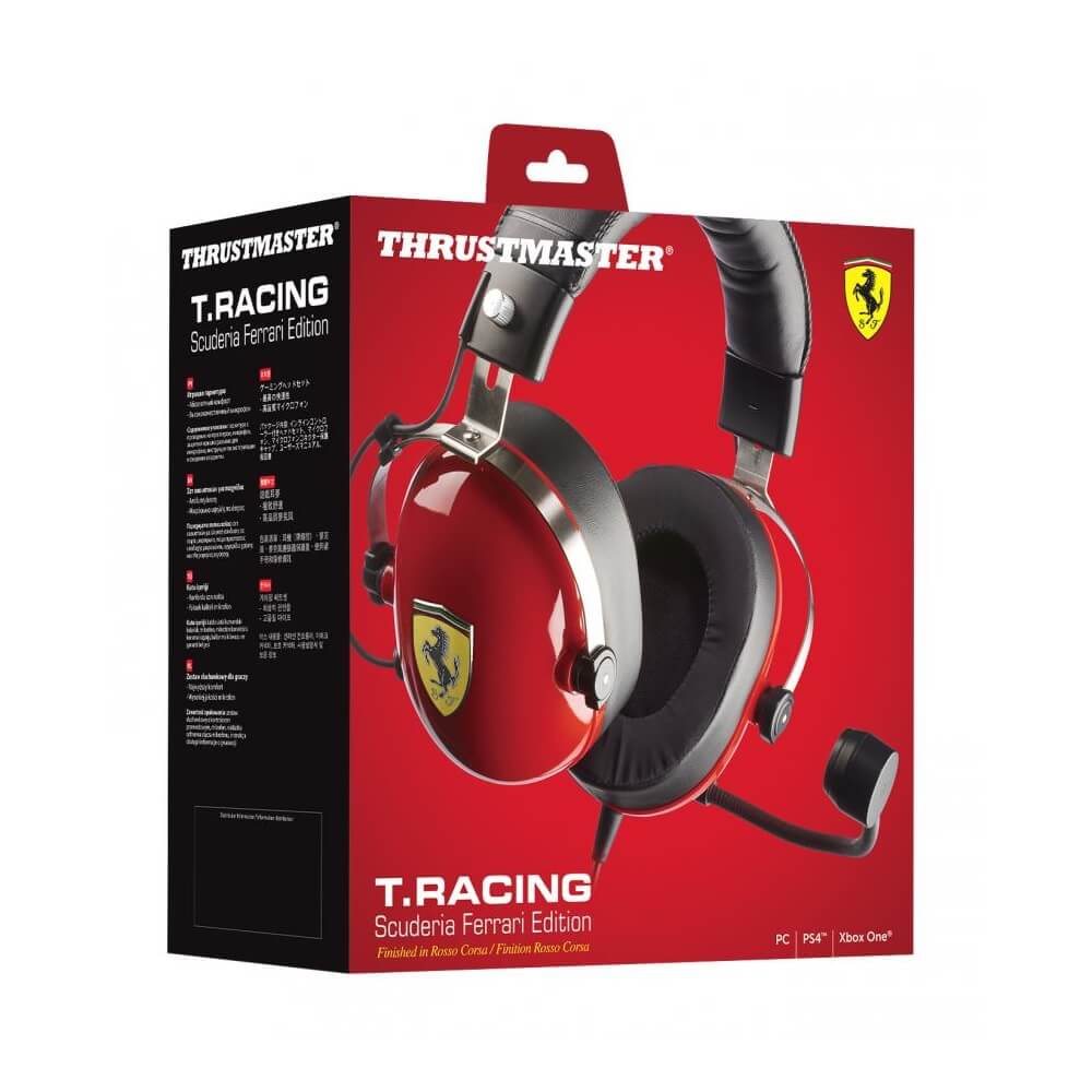 - Thrustmaster работи от 1999 г. в сътрудничество с Ferrari и сега с гордост представя игралните слушалки T. Racing Scuderia Ferrari Edition. Новият дизайн е продукт на многогодишен опит и е създаден в почит на състезателните пилоти и членовете на техните отбори
