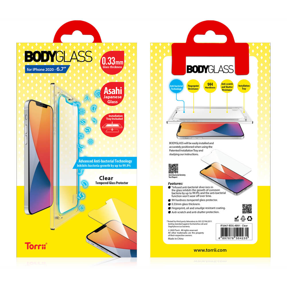 Torrii BodyGlass 2.5D Anti-Bacterial Glass - калено стъклено защитно покритие с антибактериално покритие за iPhone 12 Pro Max (прозрачен)