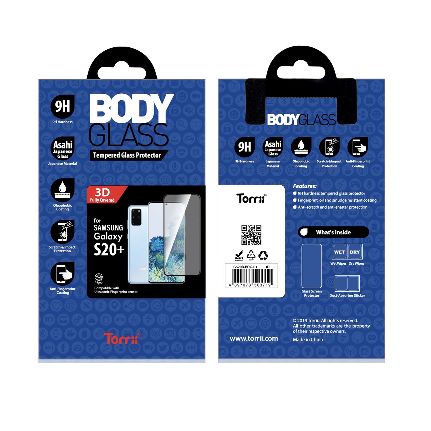 Torrii BodyGlass 3D Curved Edge Glass - калено стъклено защитно покритие с извити ръбове за целия дисплея на Samsung Galaxy S20 Plus (черен-прозрачен)