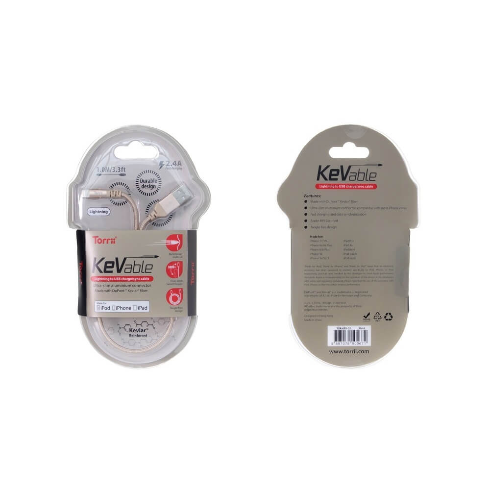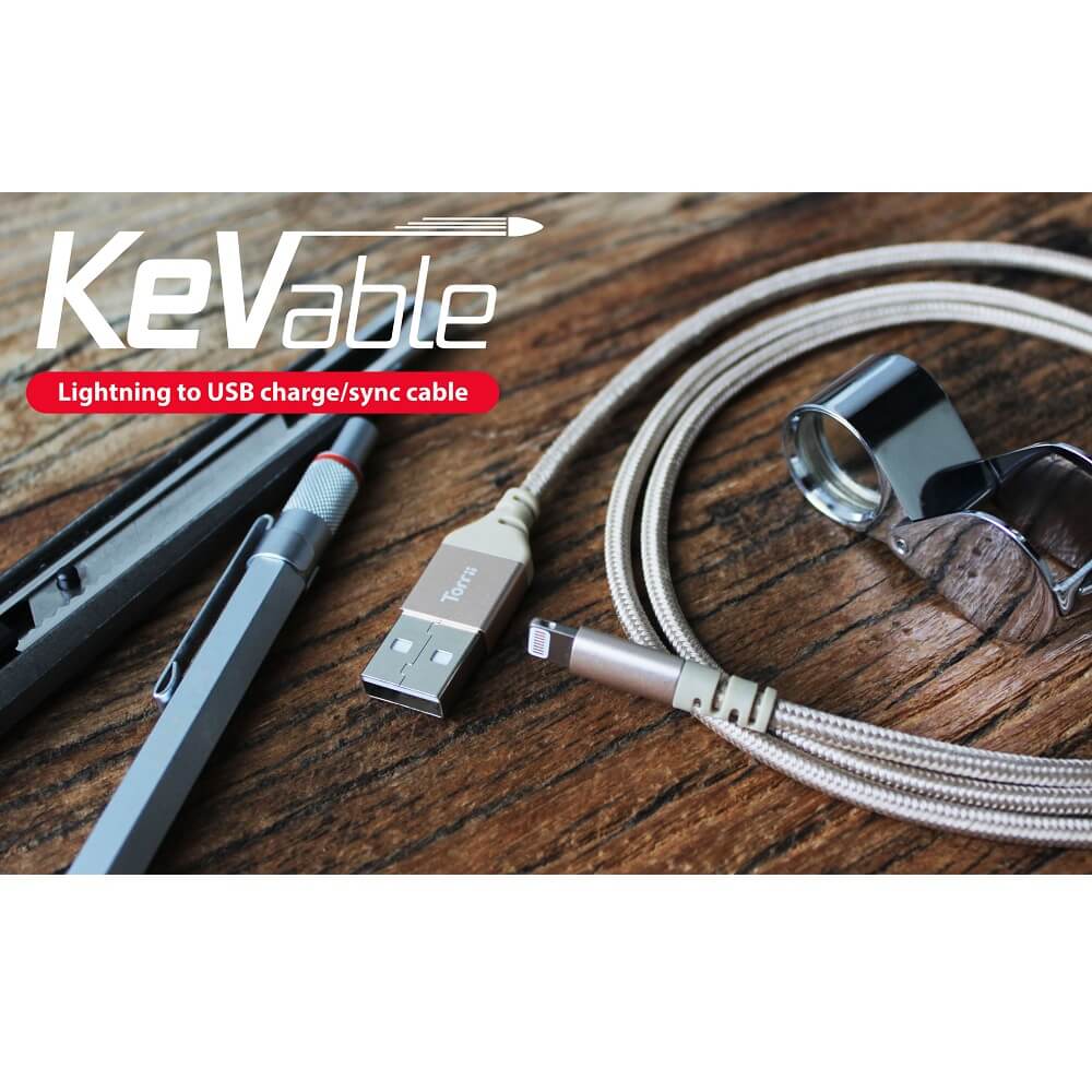 Torrii KeVable Lightning to USB (1 meter) - изключително здрав кевларен Lightning кабел за iPhone, iPad, iPod с Lightning (1 метър) (златист)