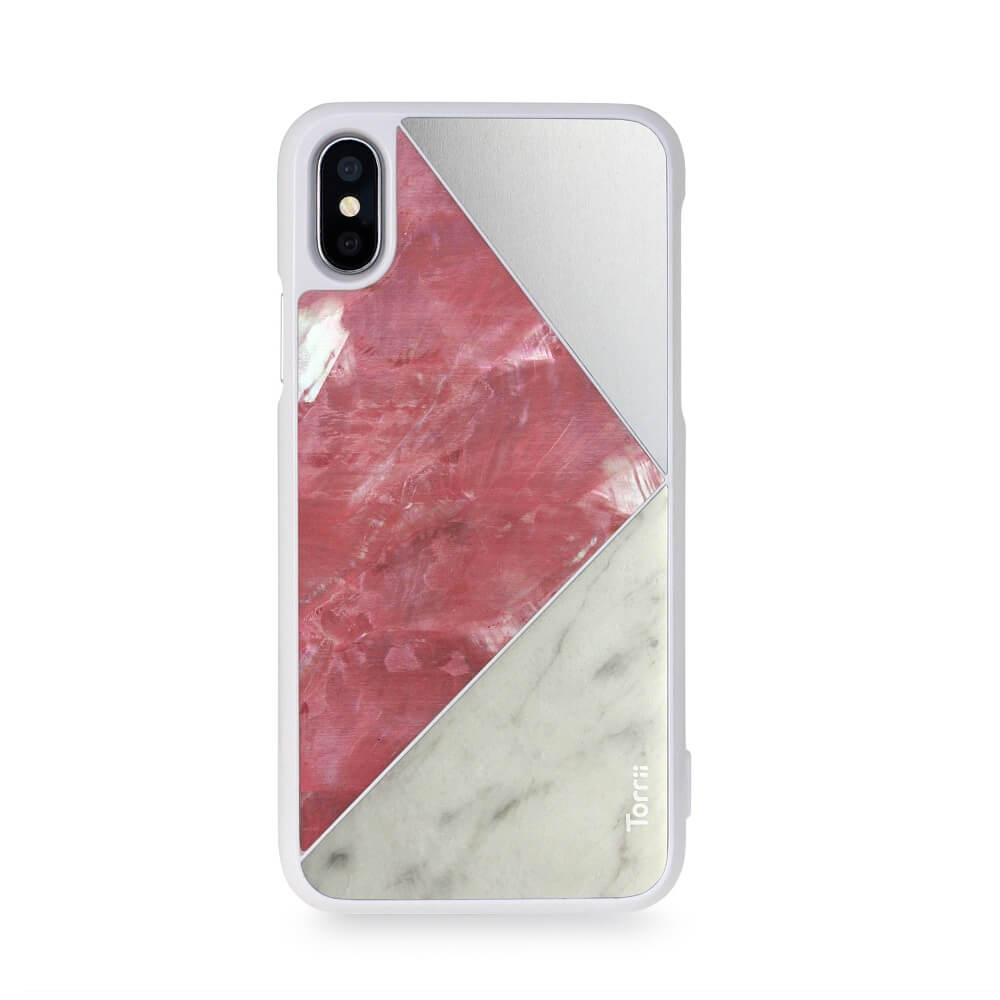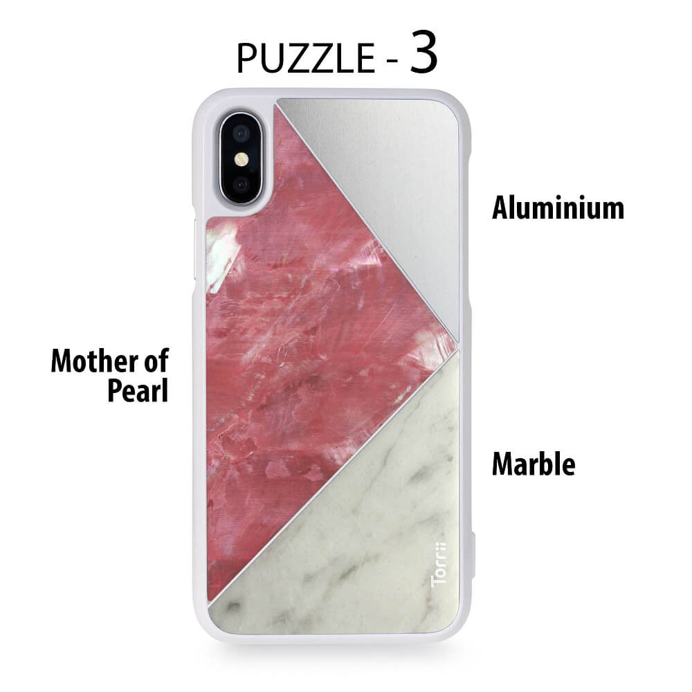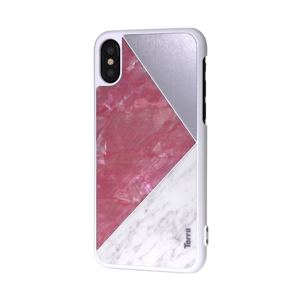Torrii Puzzle Case - хибриден (поликарбонат, алуминий, мрамор и перли) кейс за iPhone XS, iPhone X (бял)