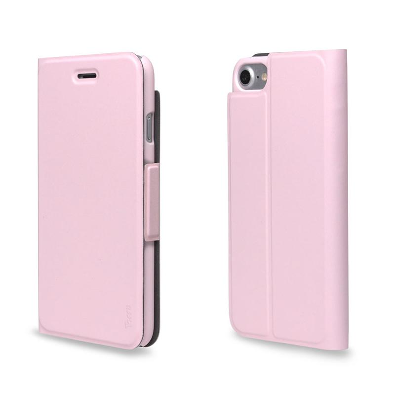 Torrii Torrio Leather Case - кожен калъф със слот за кр. карта и поставка за iPhone 8, iPhone 7 (розов)