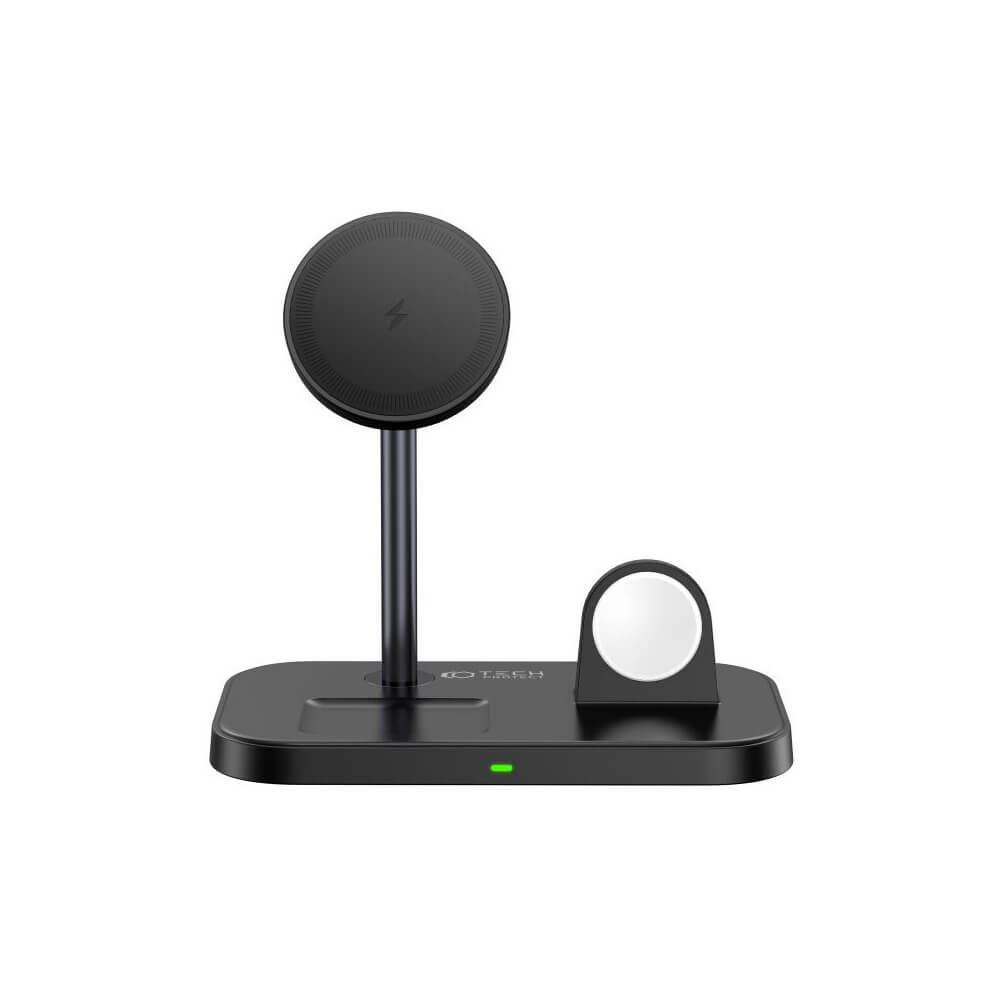 Тройна поставка (пад) за безжично зареждане за iPhone с Magsafe, Apple Watch и AirPods Pro - Tech-Protect 3-in-1 Magnetic MagSafe Wireless Charger A22 (черен)