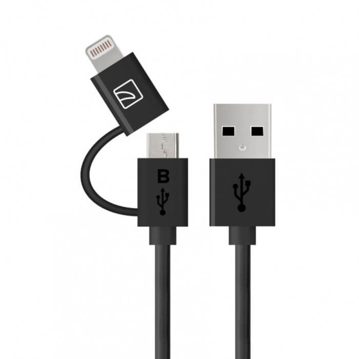 Tucano 2-in-1 Lightning and MicroUSB Cable - USB кабел 2в1 за Lightning и MicroUSB устройства (черен)