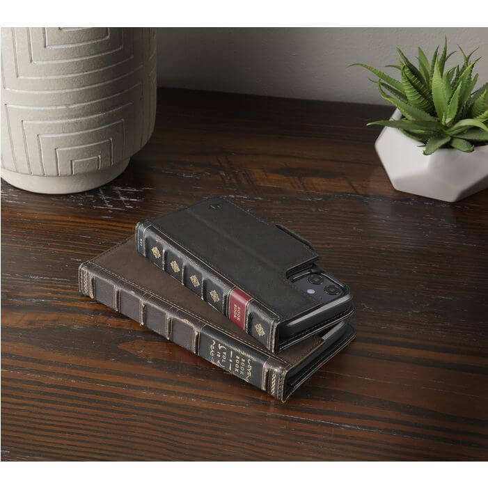 - Луксозен кожен калъф/портфейл във формата на книга с вграден кейс