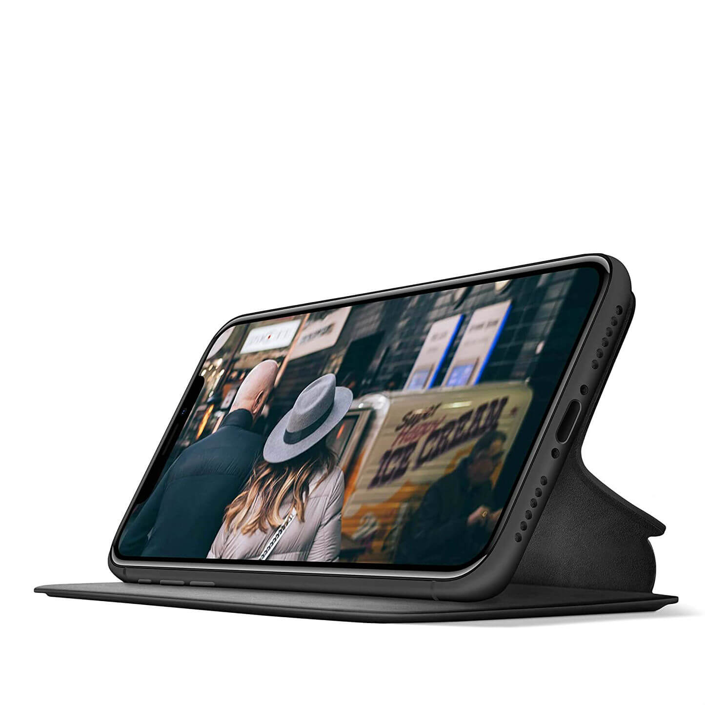 - Калъфът се трансформира в поставка за вашия смартфон