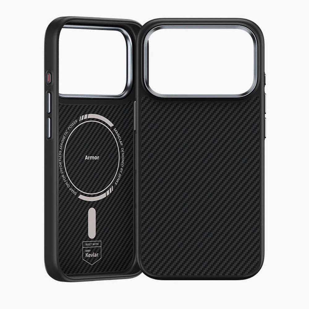 Кейсът е изработен от 100% кевлар и TPU (термополиуретан), което му придава изключителна здравина и устойчивост на удари. Тези материали осигуряват дълготрайна защита и минимално механично триене, което прави кейса идеален за активни потребители.