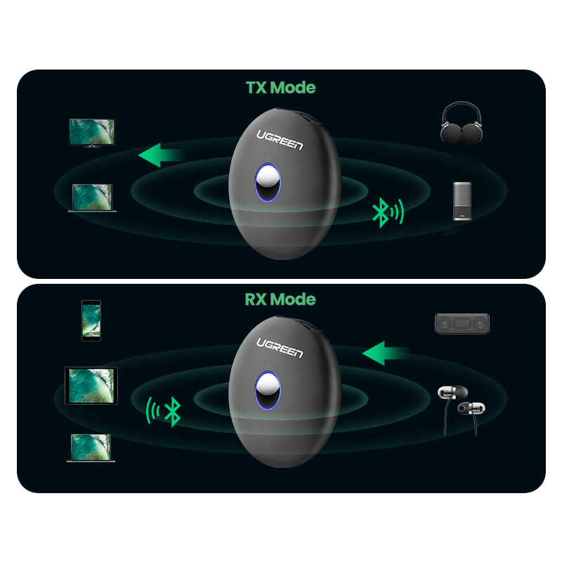 - В режим трансмитер можете да го използвате за предаване на аудио сигнал от източник, който няма Bluetooth към слушалки или говорители с Blueooth