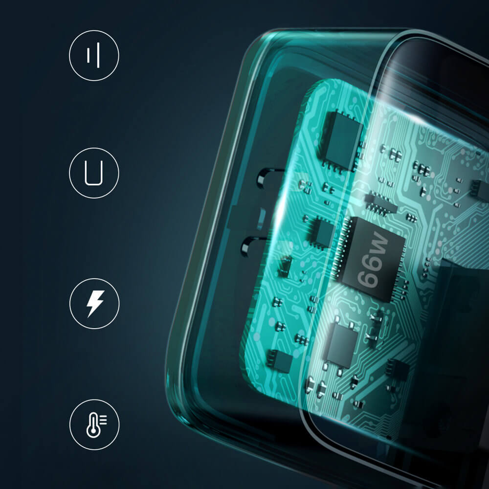 - Съвместимост: всички мобилни устройства, които се нуждаят от мощност до 66W със съответния за тях кабел