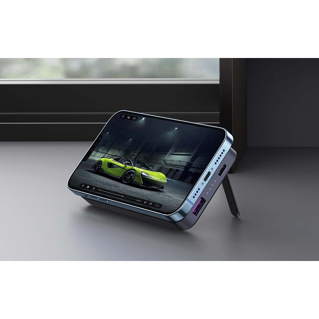 - Вградената поставка ви позволява да поставите вашият iPhone с MagSafe на бюрото, докато го зареждате, така че да можете удобно да гледате филми или снимки