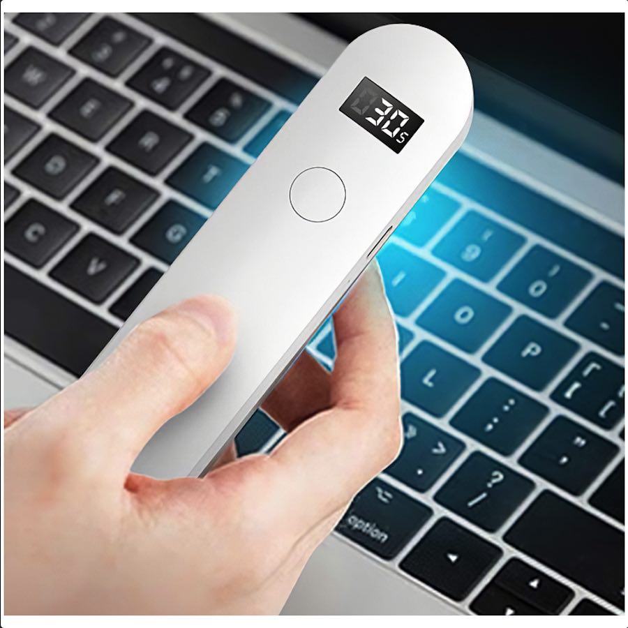 - Джобен UV стерилизатор с три степени на стерилизиране, който е подходящ за всякакви повърхности и мобилни устройства