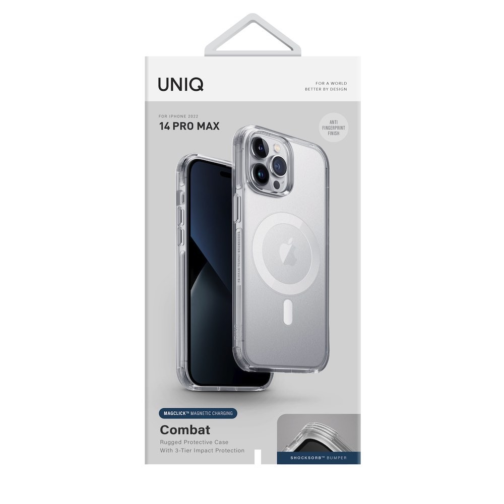 Uniq Combat MagClick Case - хибриден удароустойчив кейс за с MagSafe за iPhone 14 Pro Max (прозрачен)