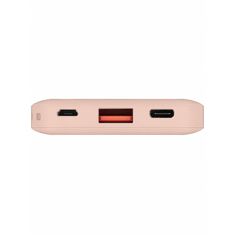 - Оборудвана е с един USB-А изход, който поддържа Qualcomm Quick Charge 2.0, един USB-C порт, който поддържа Power Delivery, и един microUSB вход. Благодарение на интегрираните портове и Qi безжичното зареждане, можете да зареждате до две устройства едновременно. Максималната мощност е 18W