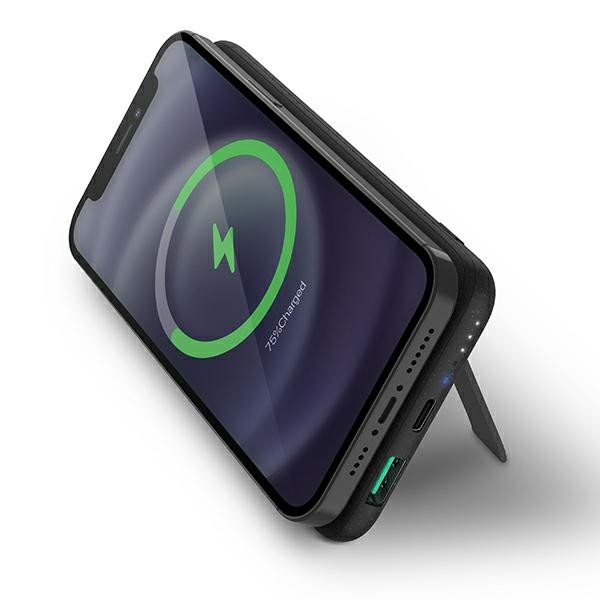 - Вградени мощни магнити за здраво захващане и щракване при зареждане. Просто поставете вашия iPhone с MagSafe върху модула и магнитният му дизайн лесно ще се прикрепи към телефона ви, а дори можете да използвате и батерията като поставка за гледане (само при iPhone моделите с MagSafe)