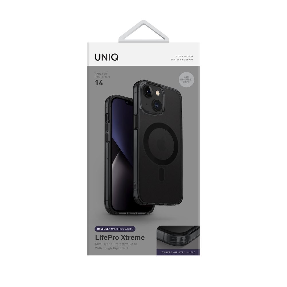 Uniq LifePro Xtreme Magnetic Case - хибриден удароустойчив кейс с MagSafe за iPhone 14 (черен-прозрачен)