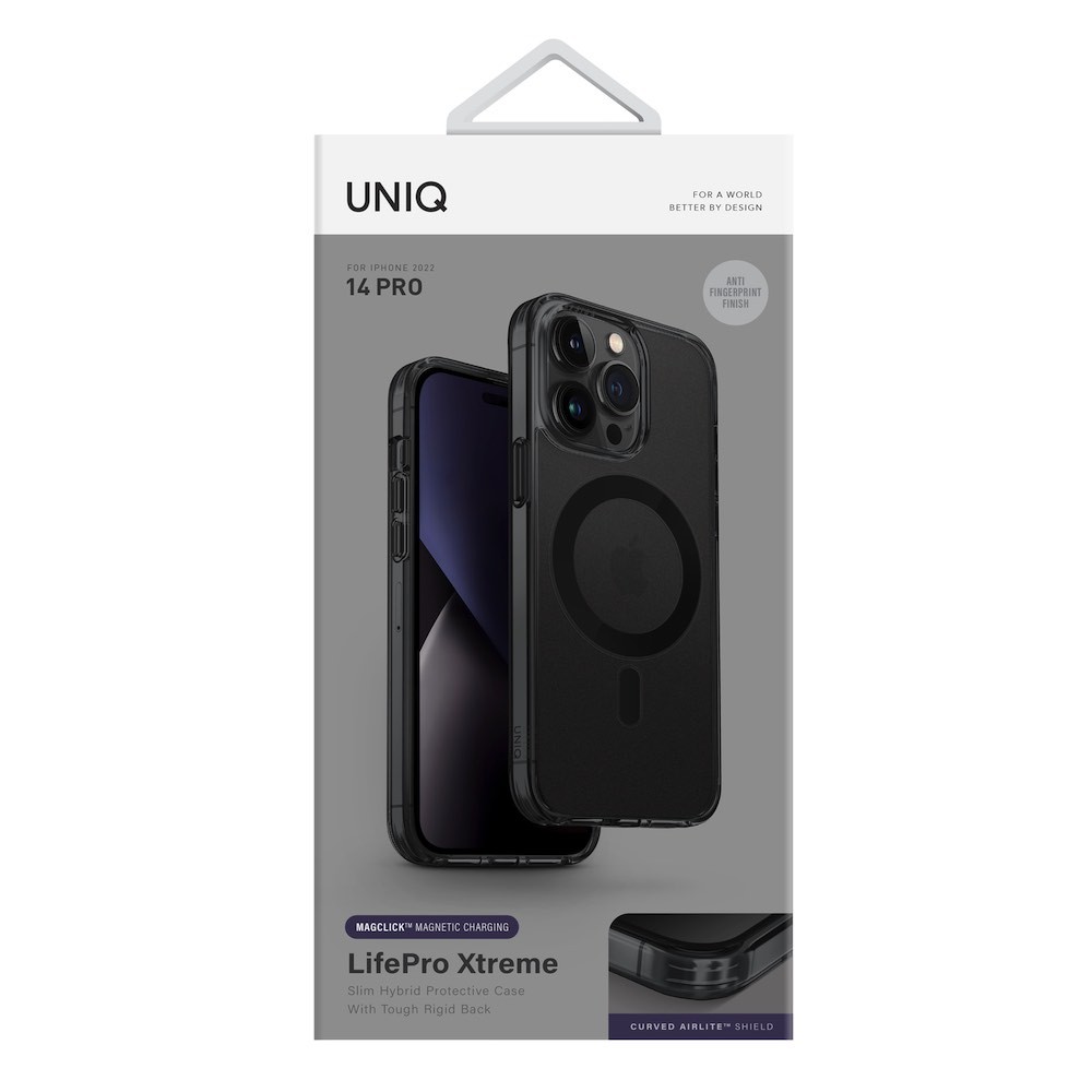 Uniq LifePro Xtreme Magnetic Case - хибриден удароустойчив кейс с MagSafe за iPhone 14 Pro (черен-прозрачен)