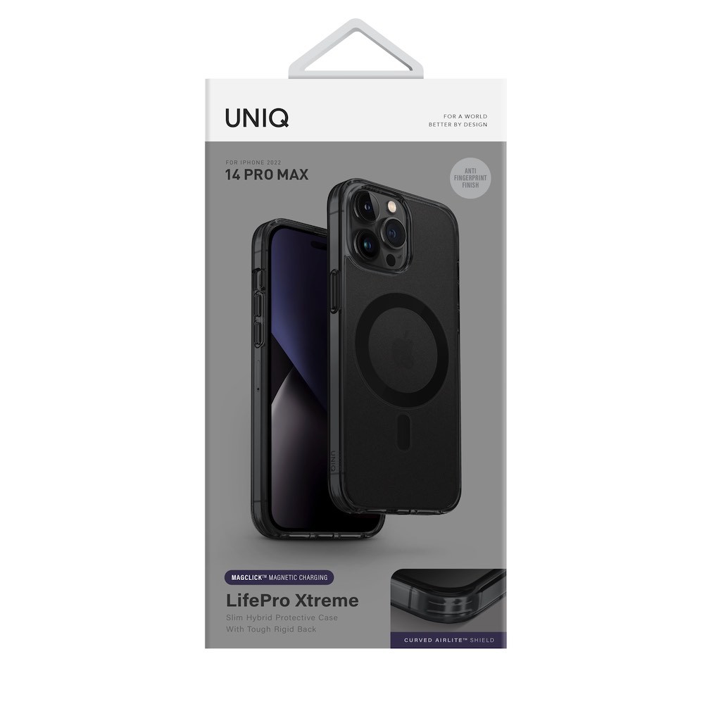 Uniq LifePro Xtreme Magnetic Case - хибриден удароустойчив кейс с MagSafe за iPhone 14 Pro Max (черен-прозрачен)