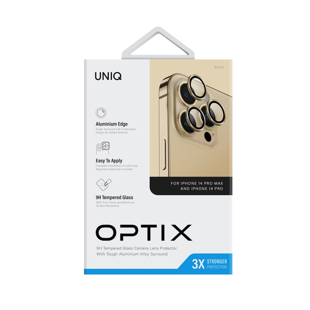 Uniq Optix Camera Tempered Glass Lens Protector - предпазни стъклени лещи за камерата на iPhone 14 Pro, iPhone 14 Pro Max (златист)