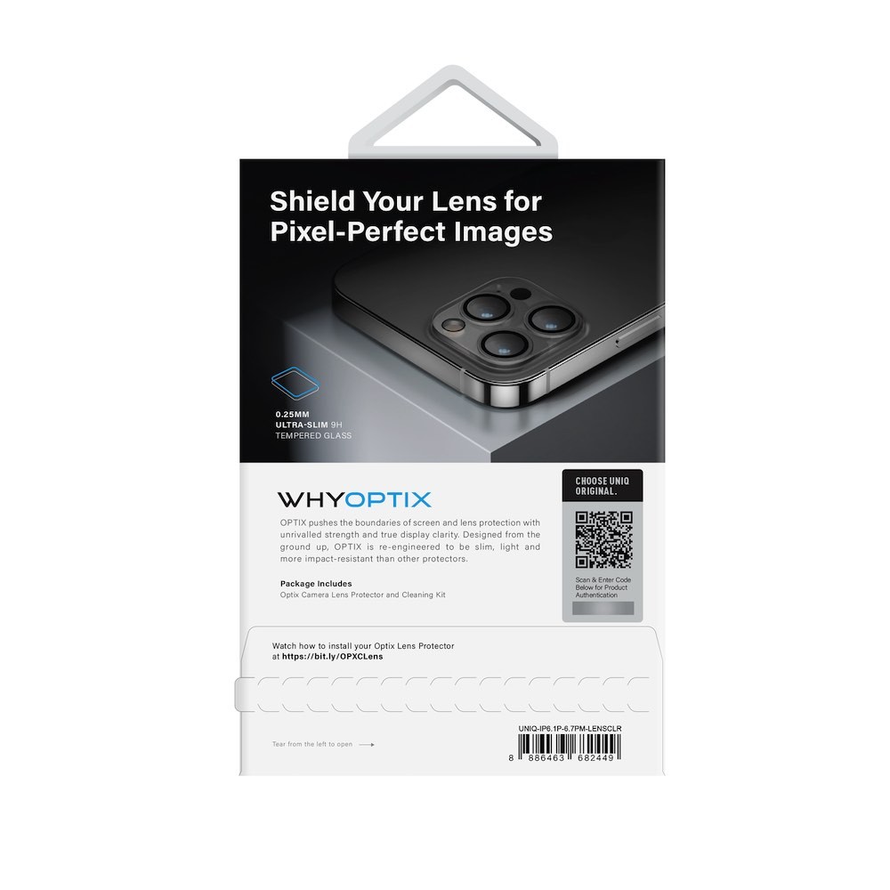 Uniq Optix Camera Tempered Glass Lens Protector - предпазно стъклено защитно покритие за камерата на iPhone 14 Pro, iPhone 14 Pro Max (прозрачен)