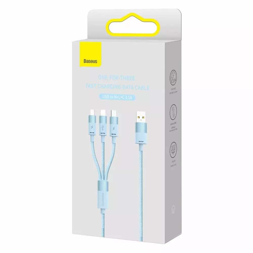 Универсален USB-A кабел с Lightning, microUSB и USB-C конектори (120 см) - Baseus StarSpeed 3-in-1 USB-A Cable (CAXS000017) (син)