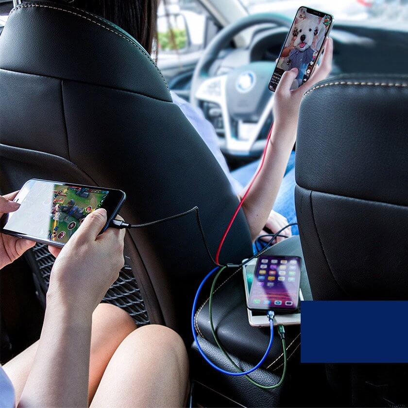С Baseus Fast 4-in-1 Charging Data Cable можете да забравите за многото кабели, които носите със себе си. Този иновативен продукт заменя microUSB, Lightning и USB-C кабели, спестявайки място и правейки живота ви по-лесен. Интелигентното разпознаване на устройствата осигурява безопасно и ефективно зареждане.