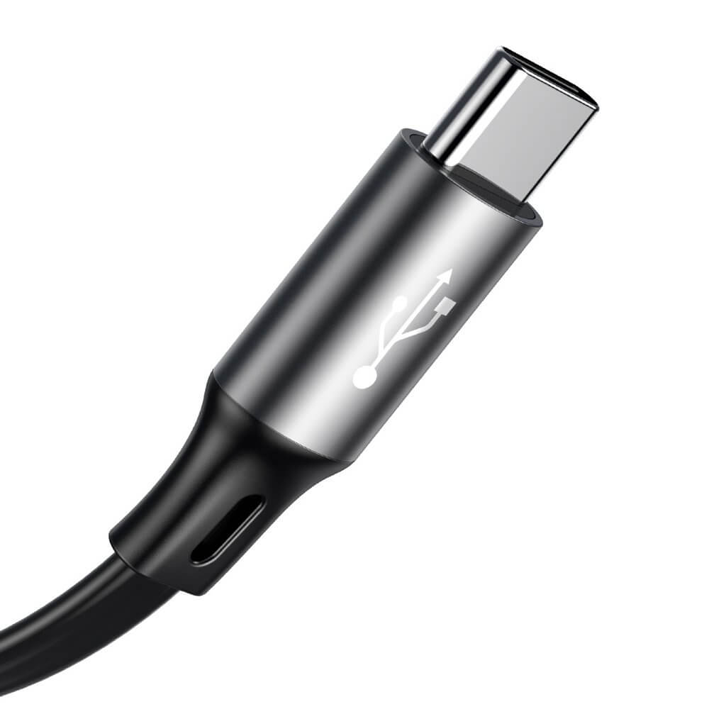 Универсален USB кабел с Lightning, microUSB и USB-C конектори (120 см) - Baseus Fabric 3-in-1 Flexible Cable USB (CAMLT-BYG1) (сив)