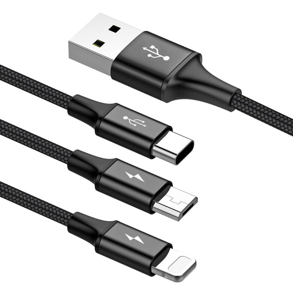 Универсален USB кабел с Lightning, microUSB и USB-C конектори (120 см) - Baseus Rapid 3-in-1 USB Cable (CAMLT-SU01) (черен)