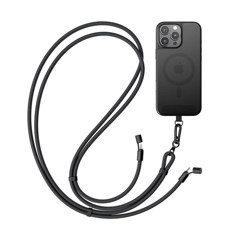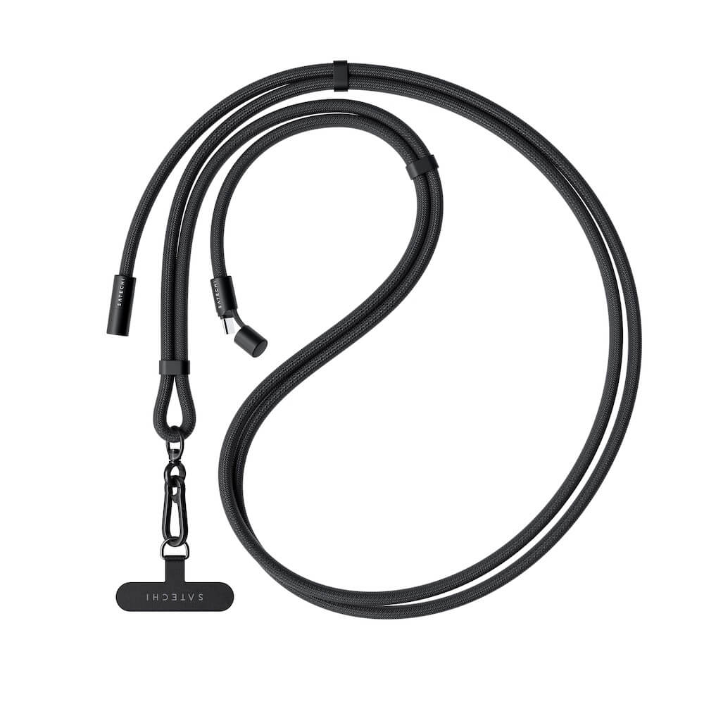 Универсална връзка за носене през врата за смартфони с вграден USB-C към USB-C кабел - Satechi OntheGo Crossbody Phone Lanyard USB-C Cable 60W (черен)