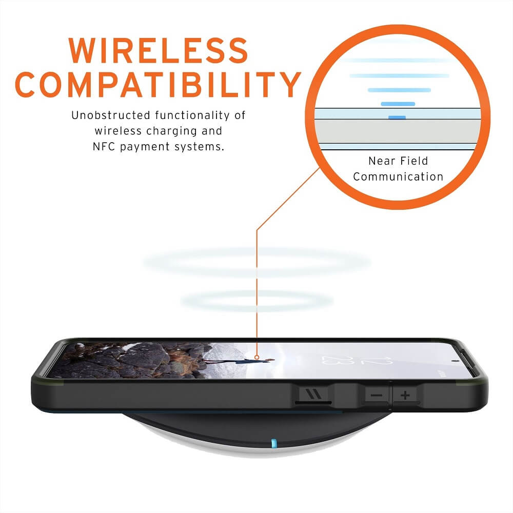- Съвместим с падове за безжично зареждане (поддържа безжично зареждане през калъфа)