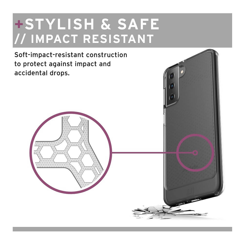 Urban Armor Gear Lucent Case - удароустойчив силиконов калъф за Samsung Galaxy S21 (черен-прозрачен)