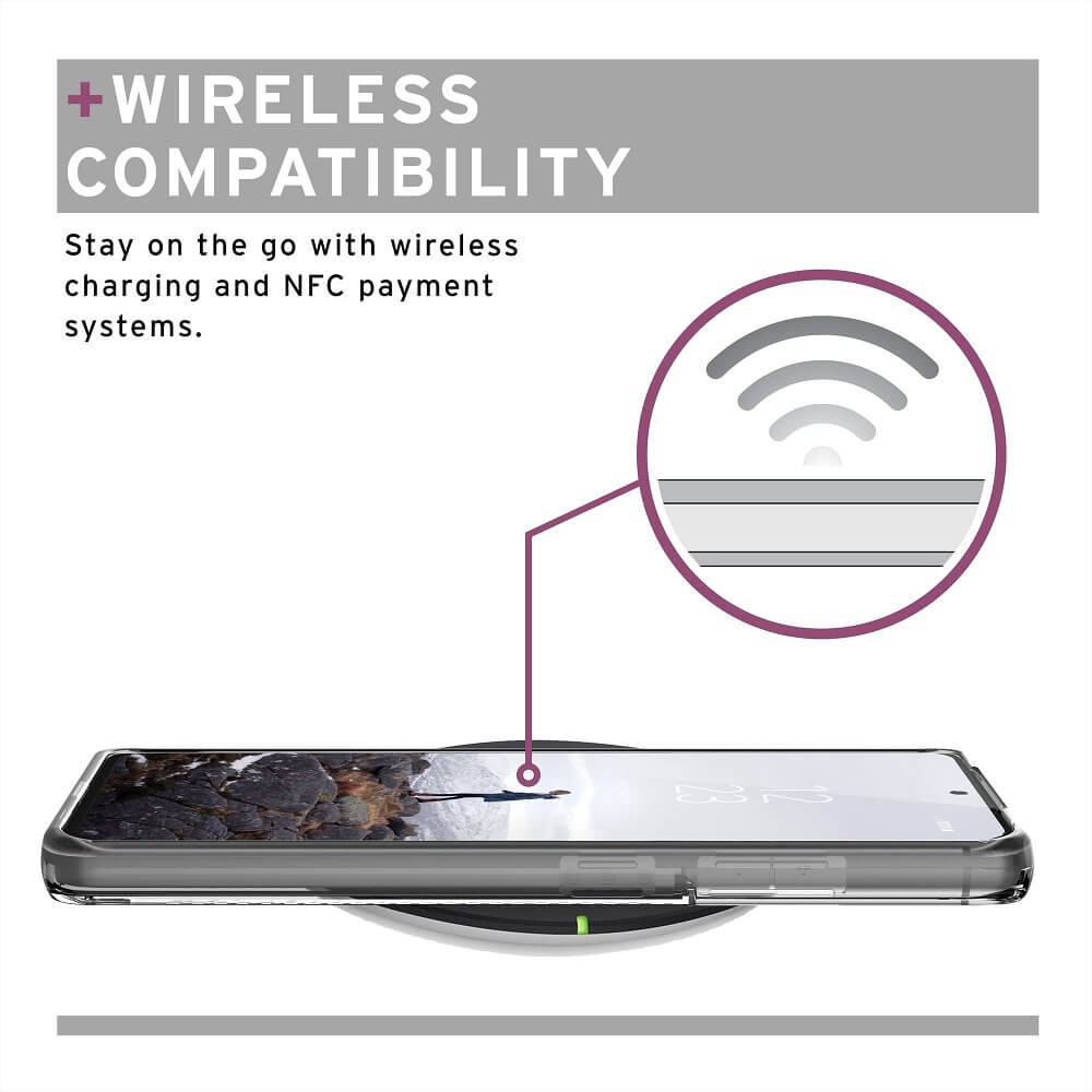 - Съвместим с падове за безжично зареждане (поддържа безжично зареждане през калъфа)