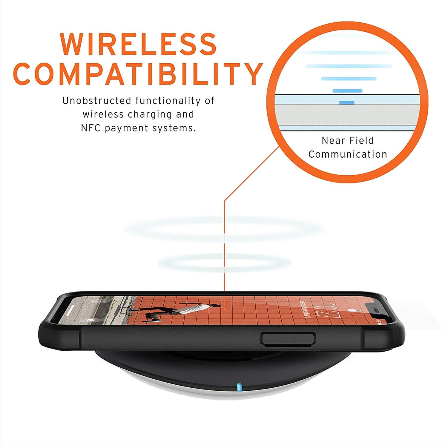 - Съвместим с падове за безжично зареждане (поддържа безжично зареждане през калъфа)