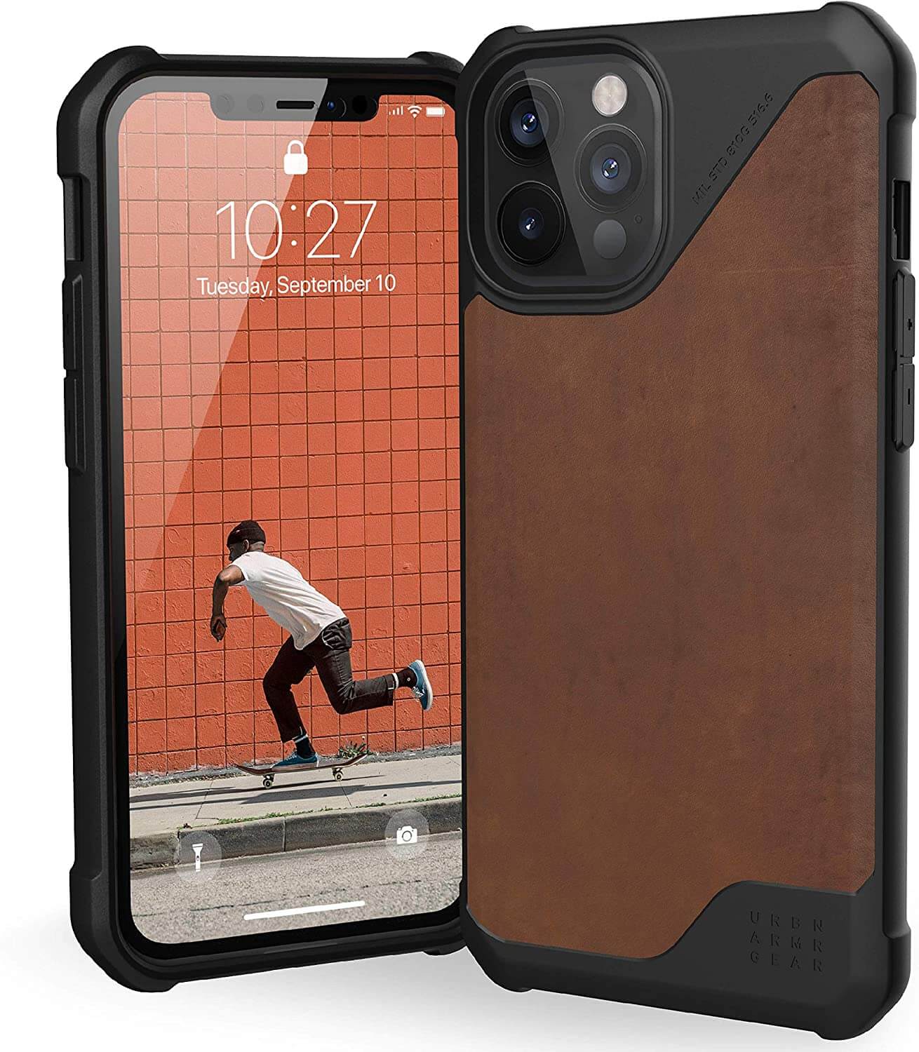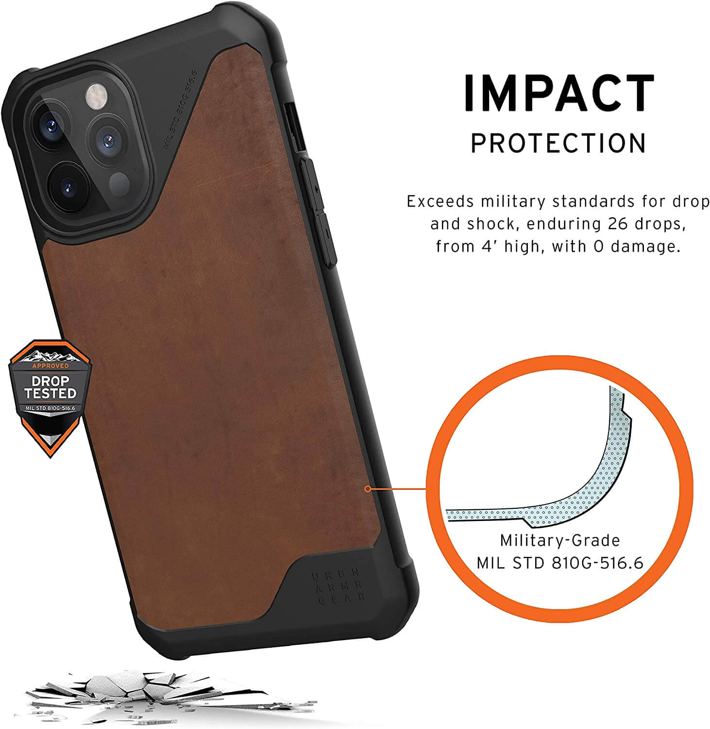 Urban Armor Gear Metropolis LT Supple Italian Leather (LTHR) - удароустойчив хибриден (естествена кожа и TPU) кейс за iPhone 12, iPhone 12 Pro (кафяв)