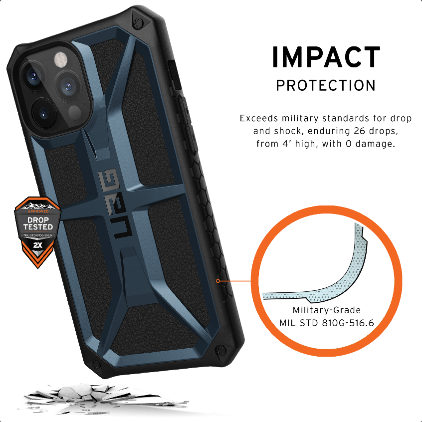 - Серията Monarch на Urban Armor за iPhone, съчетава в себе си уникален дизайн и прецизна изработка, за да покрие дори двойно, военните изисквания за защита при изпускане или случайно падане