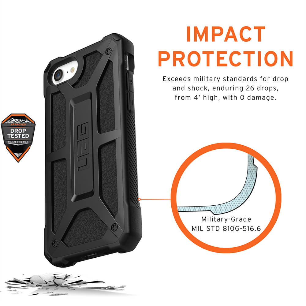 - Серията Monarch на Urban Armor за iPhone, съчетава в себе си уникален дизайн и прецизна изработка, за да покрие дори двойно, военните изисквания за защита при изпускане или случайно падане