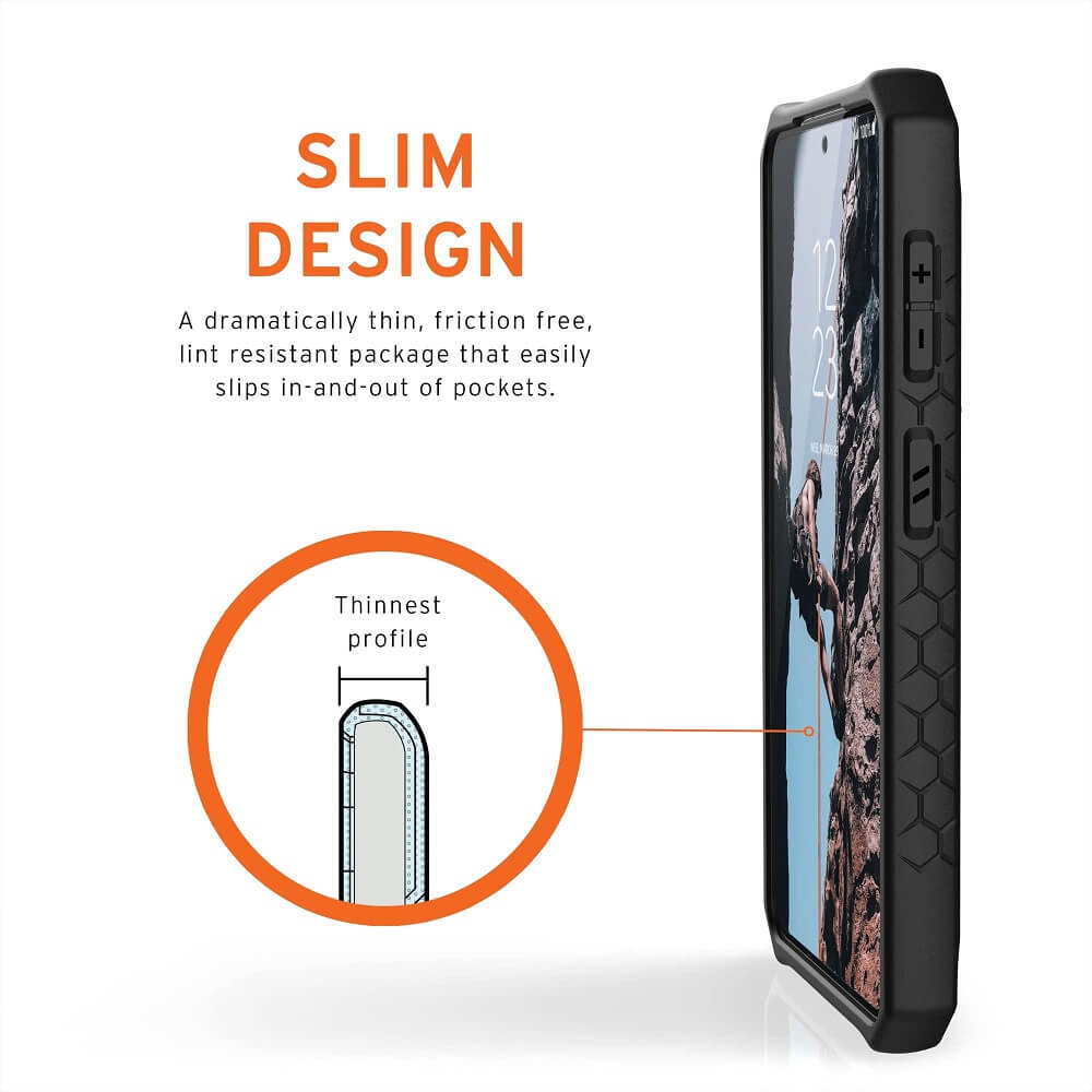 - Серията Monarch на Urban Armor за Galaxy S21 Plus, съчетава в себе си уникален дизайн и прецизна изработка, за да покрие дори двойно, военните изисквания за защита при изпускане или случайно падане