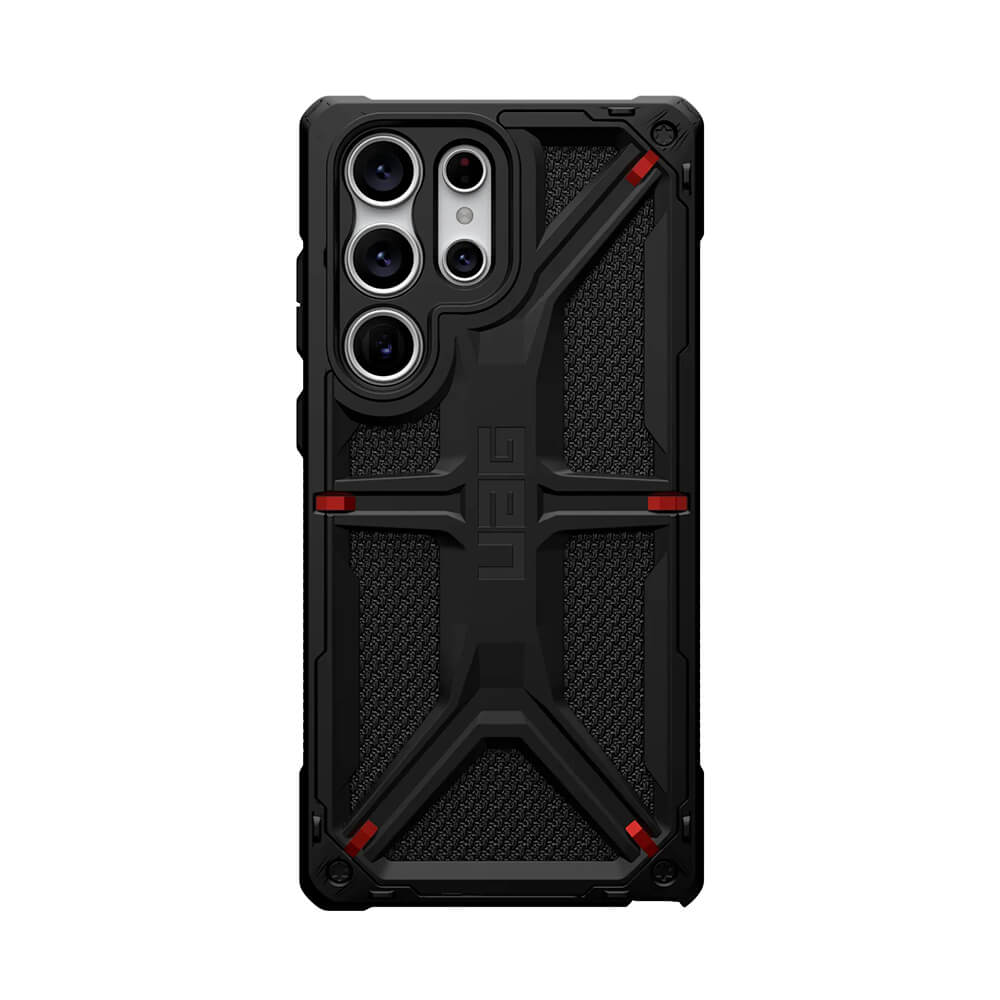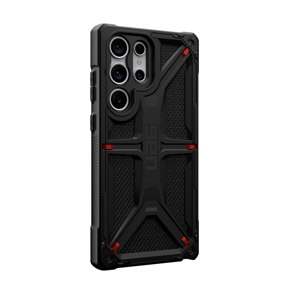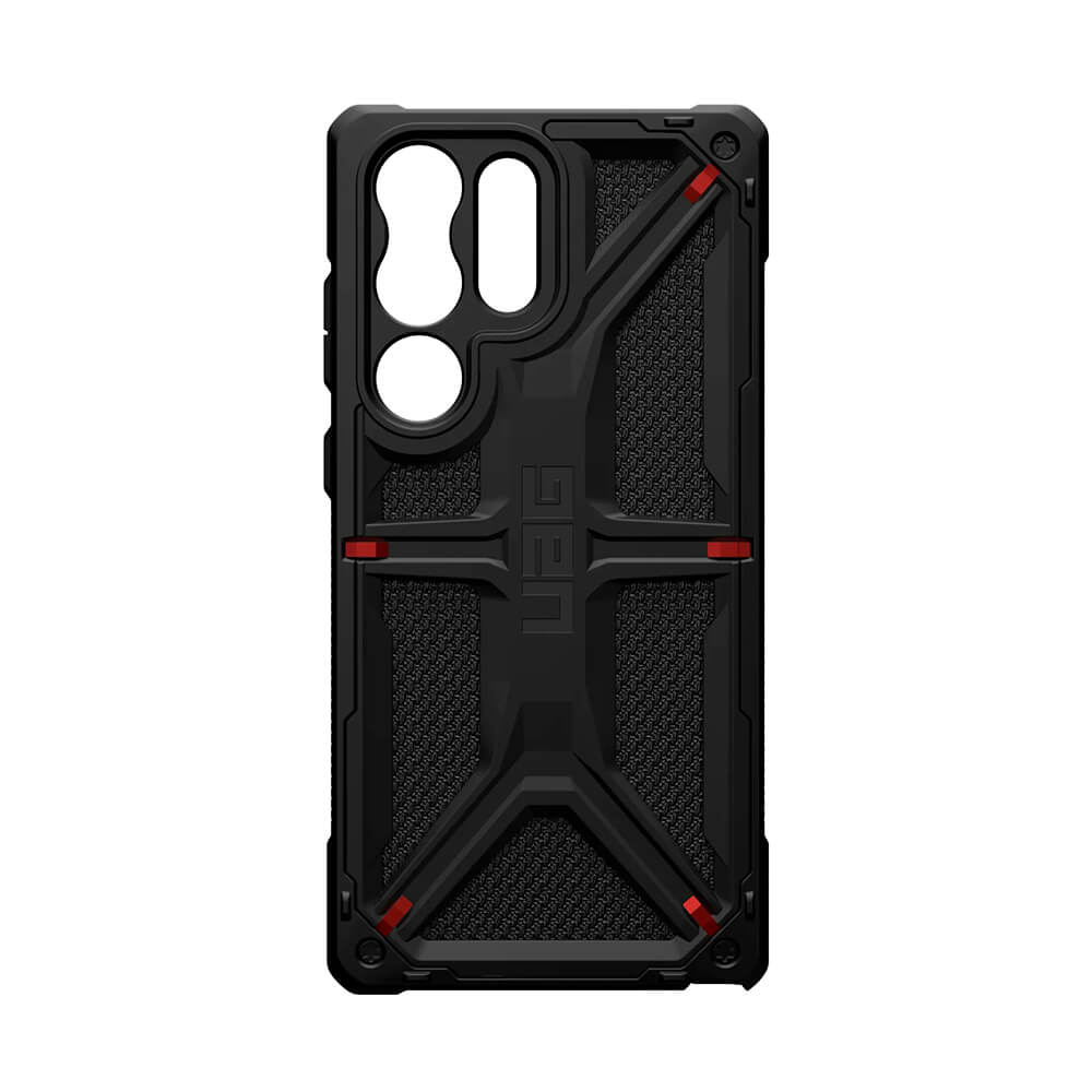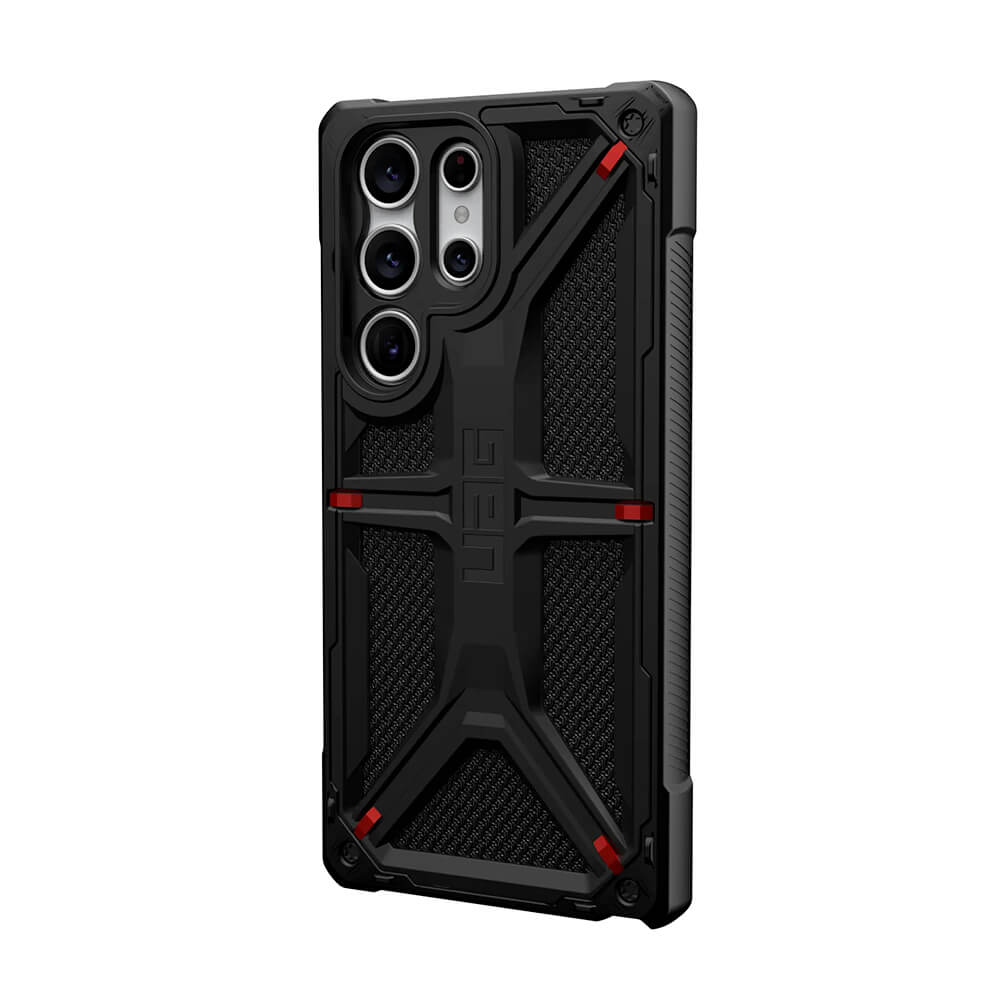 - За направата на Urban Armor Gear Monarch се използва здрава метална сплав и Карбонови влакна , за да допринесат за невероятното излъчване на кейса