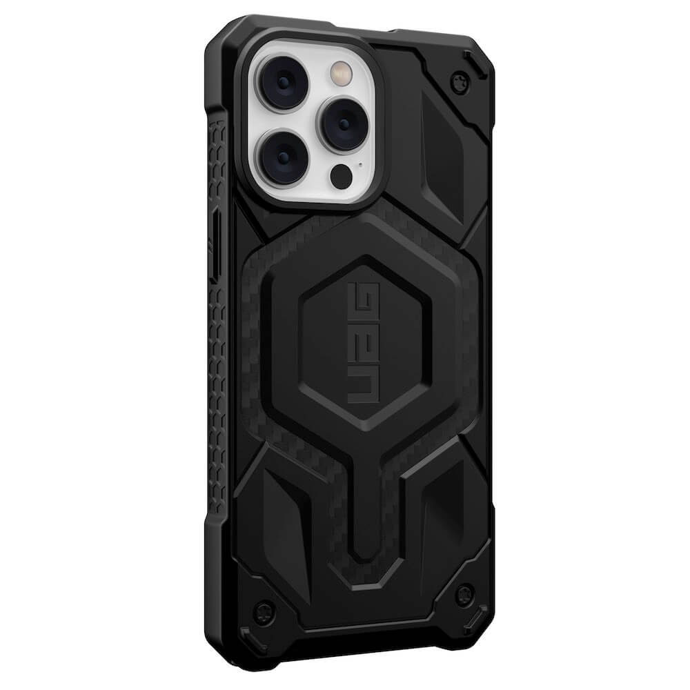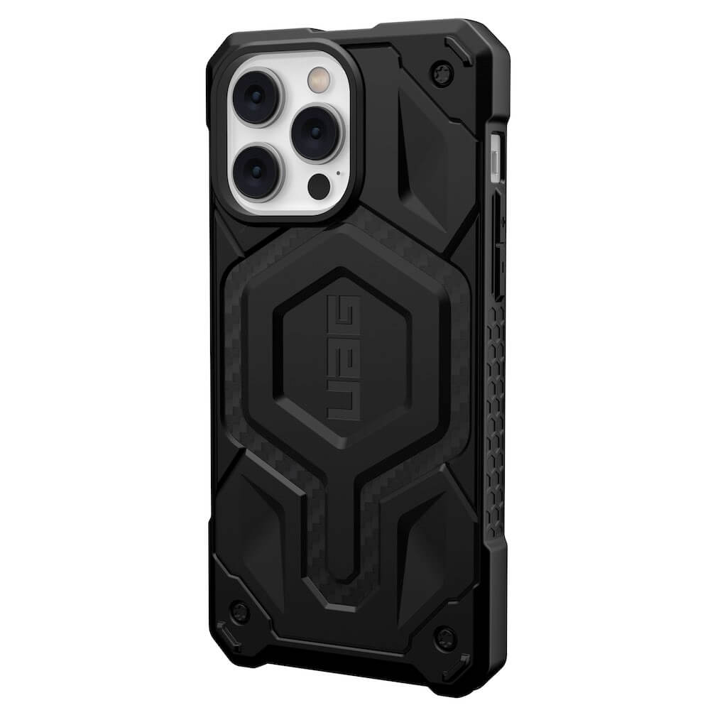 Urban Armor Gear Monarch Pro MagSafe Case - удароустойчив хибриден кейс с MagSafe за iPhone 15 Pro Max (черен-карбон)