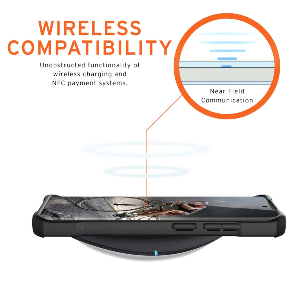 - Хибриден кейс, изработен от висококачествена карбонови фибри, здрава метална сплав и удароустойчив термополиуретан (за вътрешната част)