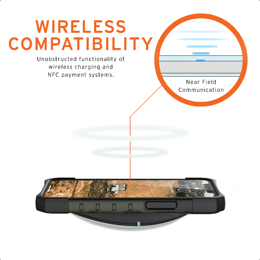 - Съвместим с падове за безжично зареждане (поддържа безжично зареждане през калъфа)