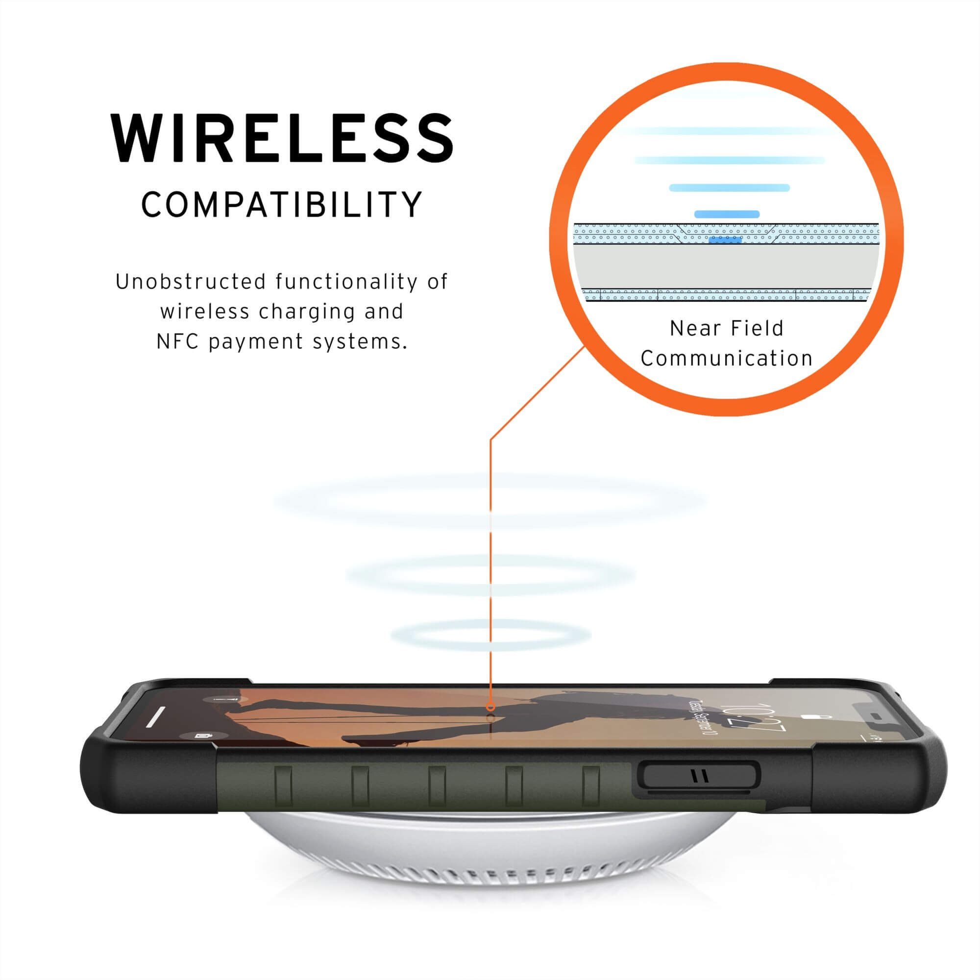 - Съвместим с падове за безжично зареждане (поддържа безжично зареждане през калъфа)