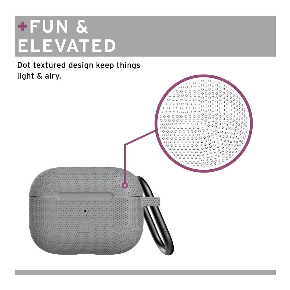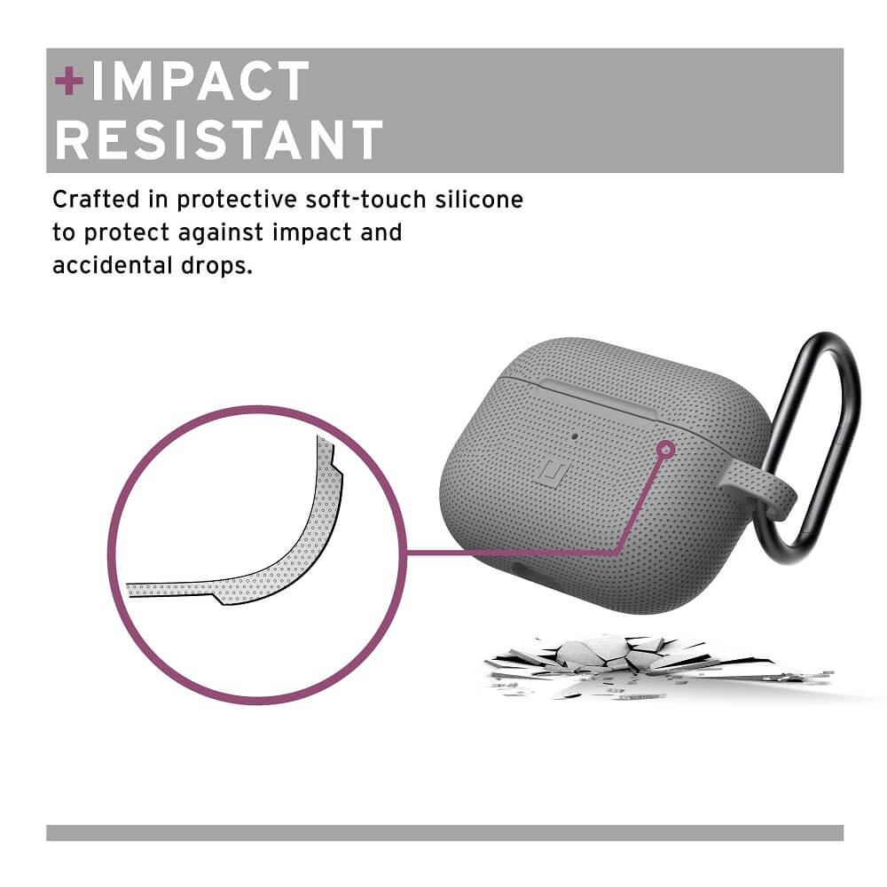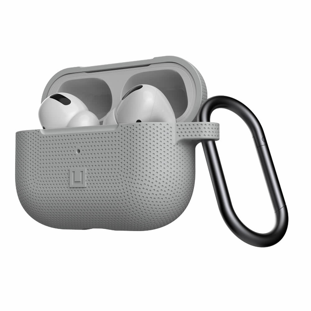 Urban Armor Gear Soft Touch U Silicone Case - удароустойчив силиконов калъф с карабинер за Apple Airpods Pro (сив)