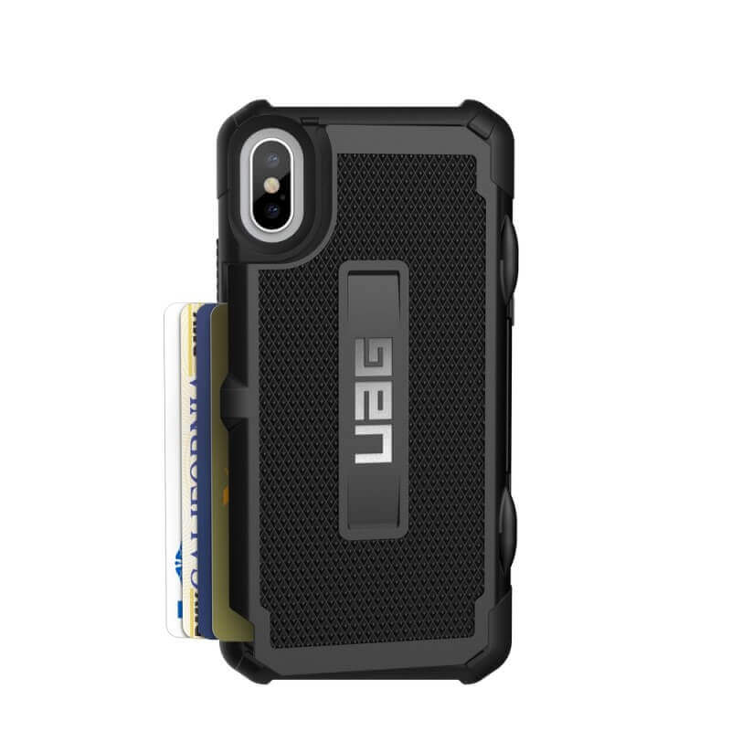 Urban Armor Gear Trooper Case - удароустойчив хибриден кейс с отделение за карти за iPhone XS, iPhone X (черен)