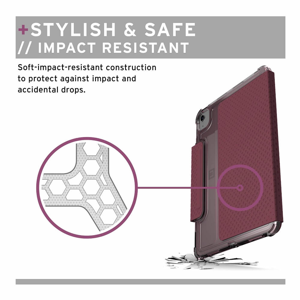 Urban Armor Gear U Lucent Case - удароустойчив хибриден кейс от най-висок клас за iPad Air 4 (2020), iPad Pro 11 (2020), iPad Pro 11 (2018) (лилав-прозрачен)
